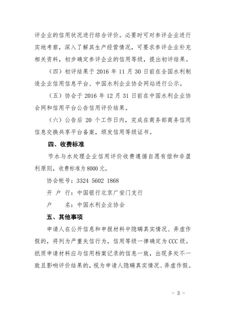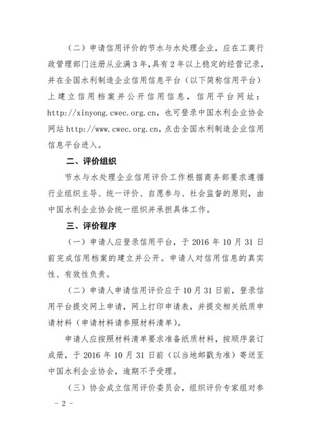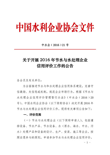 关于开展2016年节水与水处理企业信用评价工作的公告