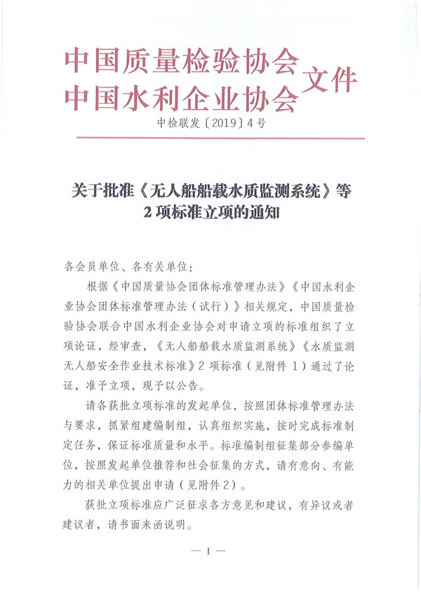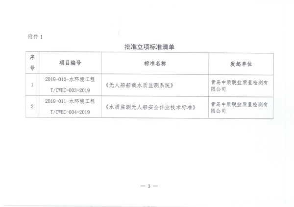 关于批准《无人船船载水质监测系统》等2项标准立项的通知