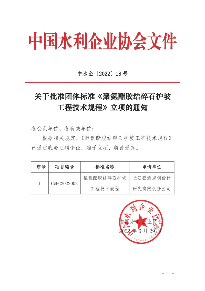 关于批准团体标准《聚氨酯胶结碎石护坡工程技术规程》立项的通知
