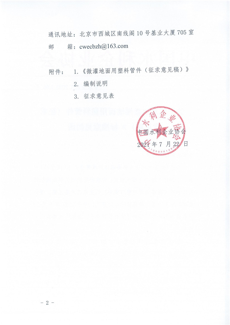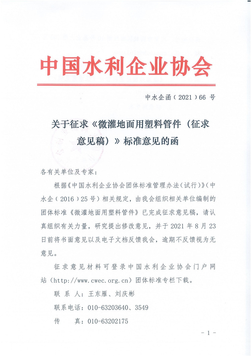 关于征求《微灌地面用塑料管件(征求意见稿)》标准意见的函.pdf