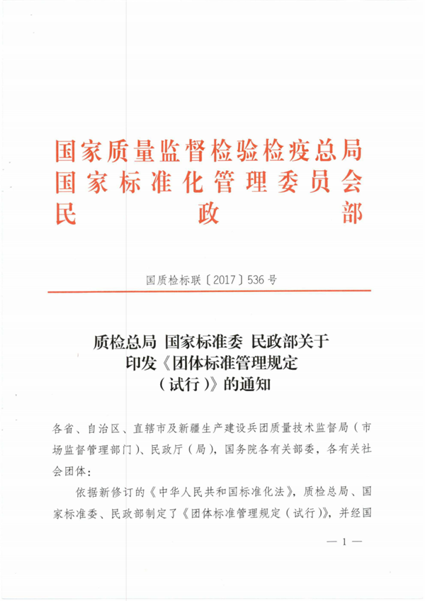 质检总局、国家标准委、民政部关于印发《团体标准管理规定(试行)》的通知