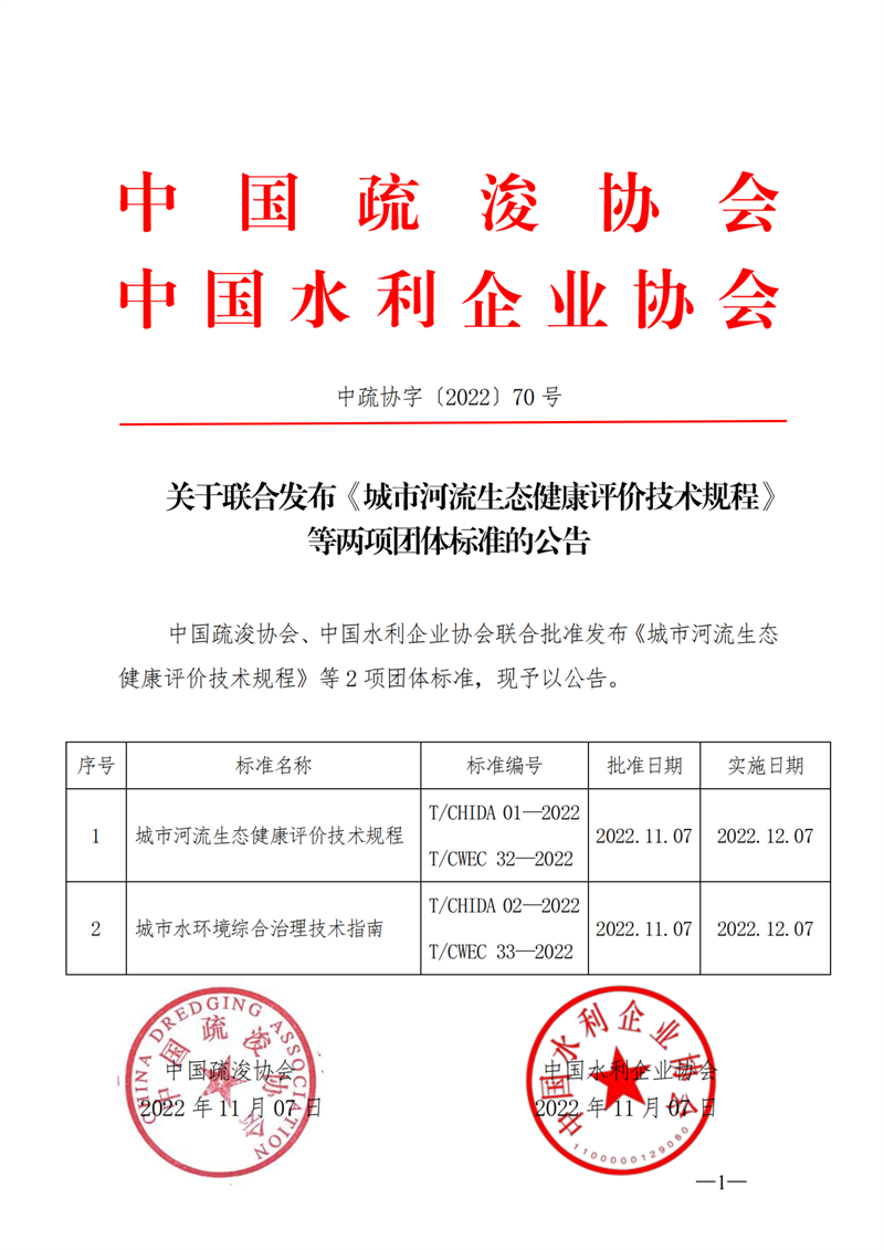 关于联合发布《城市河流生态健康评价技术规程》等两项团体标准的公告