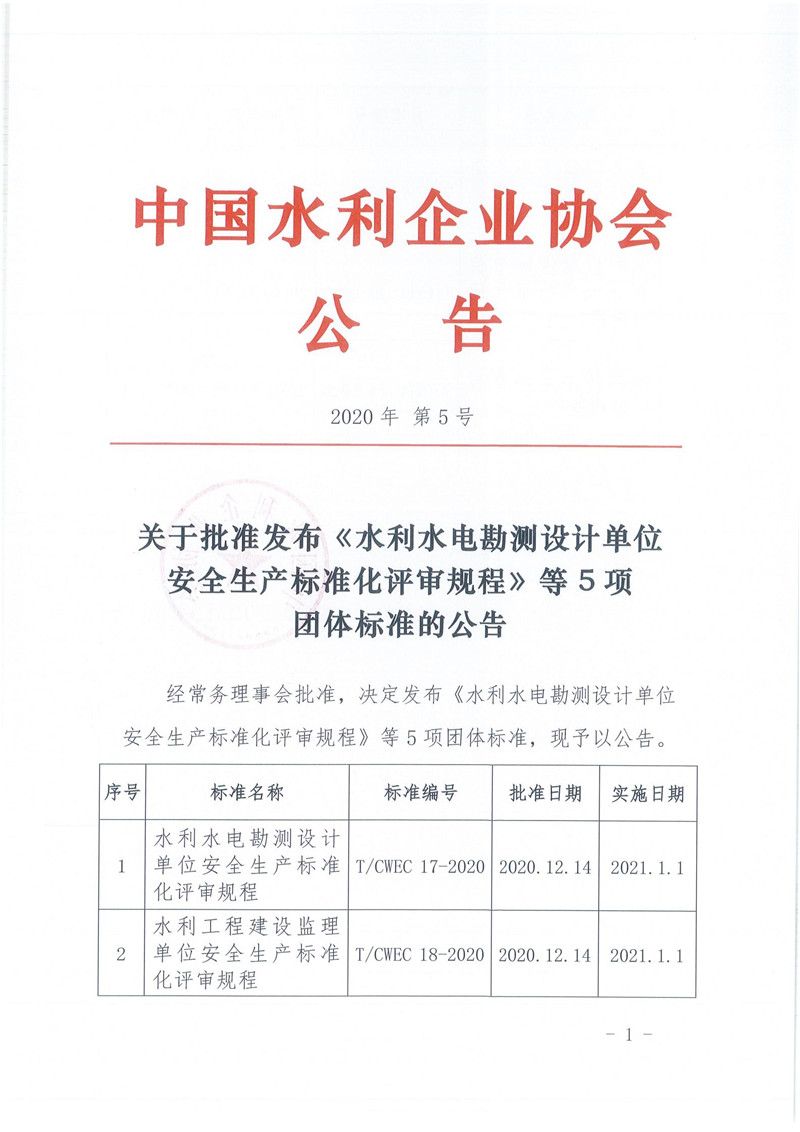 关于批准发布《水利水电勘测设计单位安全生产标准化评审规程》等5项团体标准的公告(发布稿).pdf