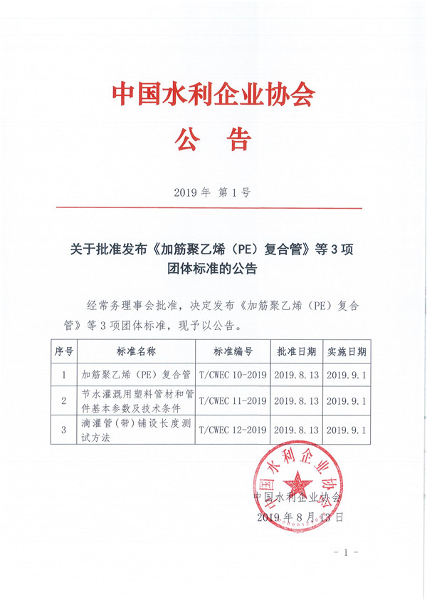 关于批准发布《加筋聚乙烯(PE)复合管》等3项团体标准的公告