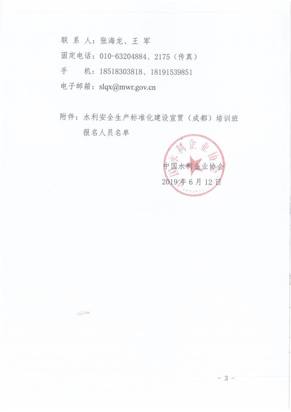 关于举办水利安全生产标准化建设宣贯(成都)培训班的通知