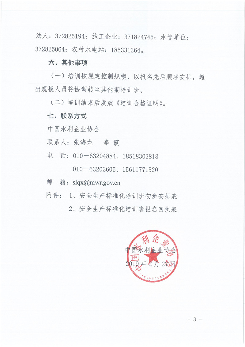 关于举办水利安全生产标准化建设宣贯培训班的预通知