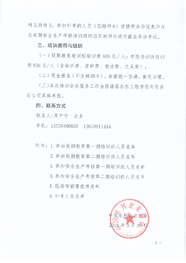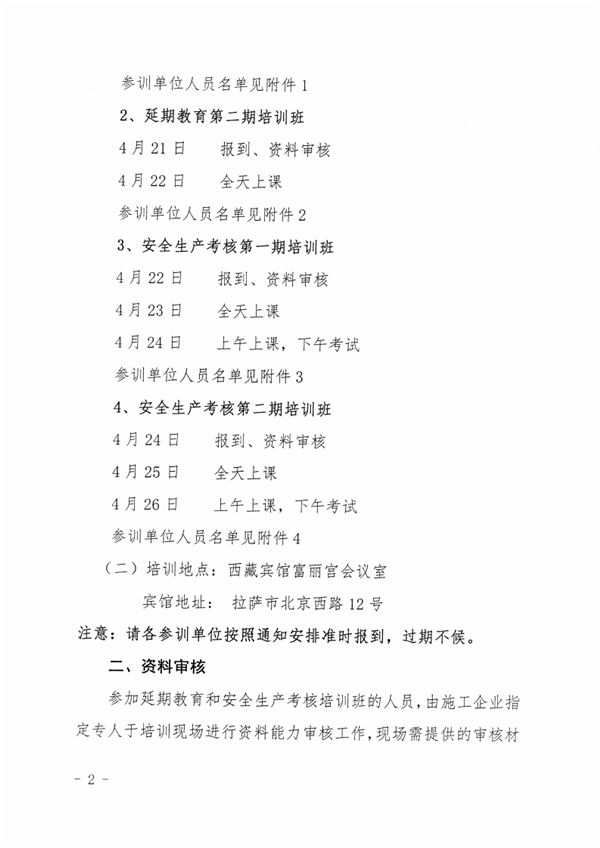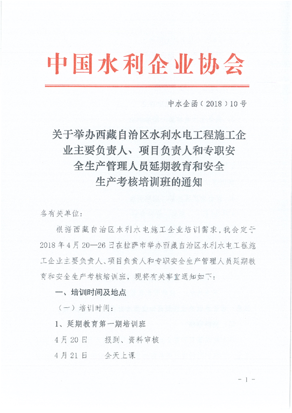 关于举办西藏自治区水利水电工程施工企业主要负责人、项目负责人和专职安全生产管理人员延期教育和安全生产考核培训班的通知