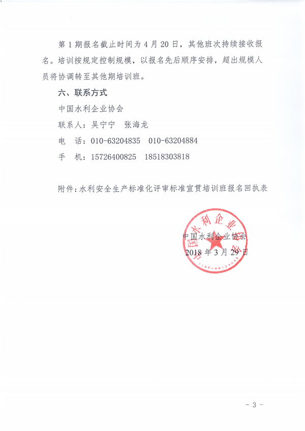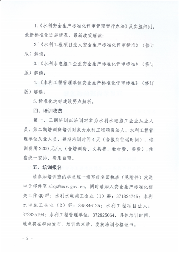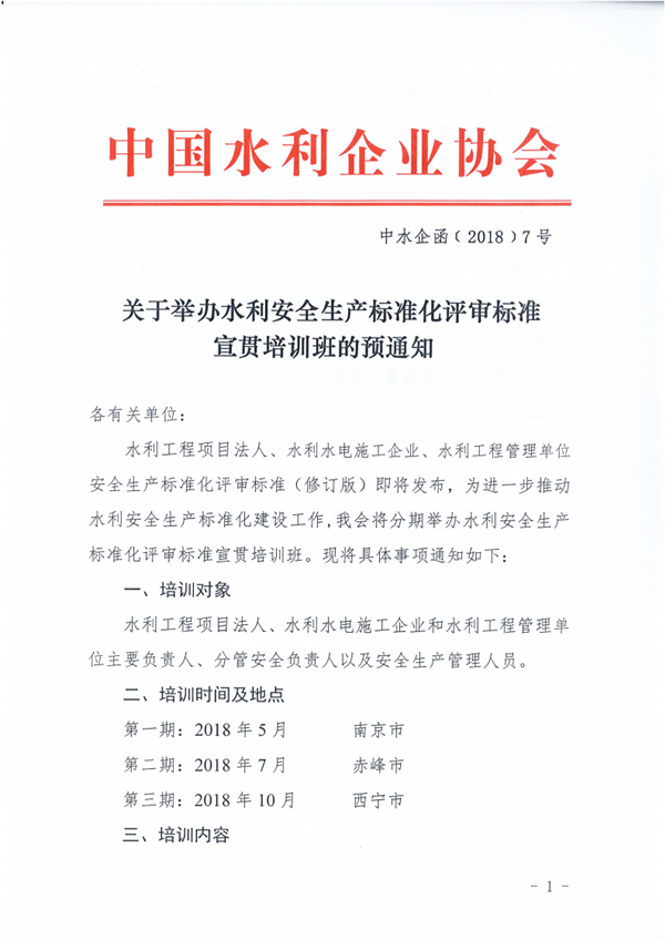 关于举办水利安全生产标准化评审标准宣贯培训班的预通知