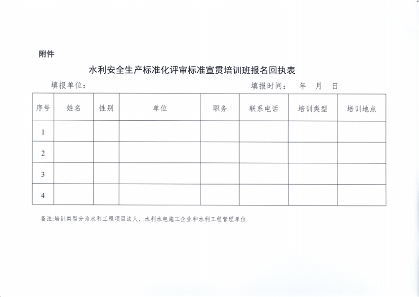 水利安全生产标准化评审标准宣贯培训班报名回执表.doc
