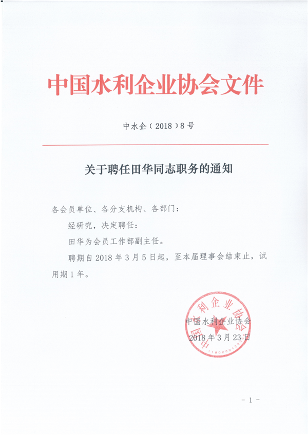 关于聘任田华同志职务的通知
