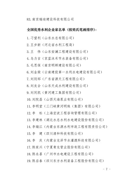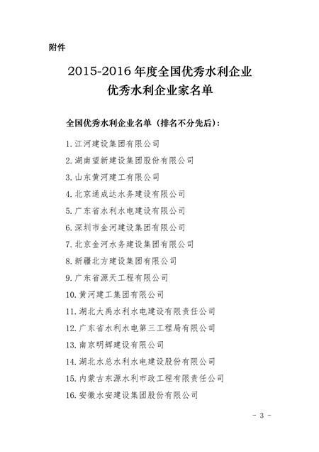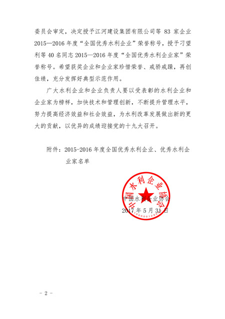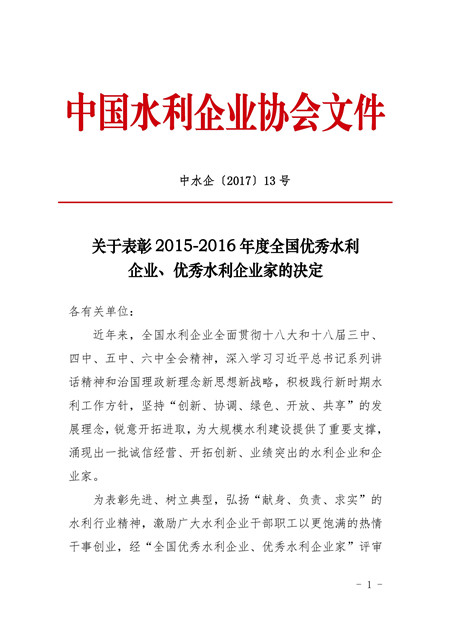 关于表彰2015-2016年全国优秀水利企业、优秀水利企业家的决定