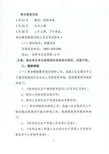 关于举办西藏自治区水利水电工程施工企业主要负责人、项目负责人和专职安全生产管理人员继续教育和安全生产考核培训班的通知