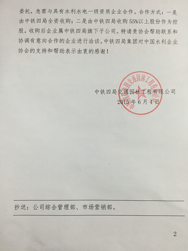 中铁四局集团寻求水电一级资质单位合作