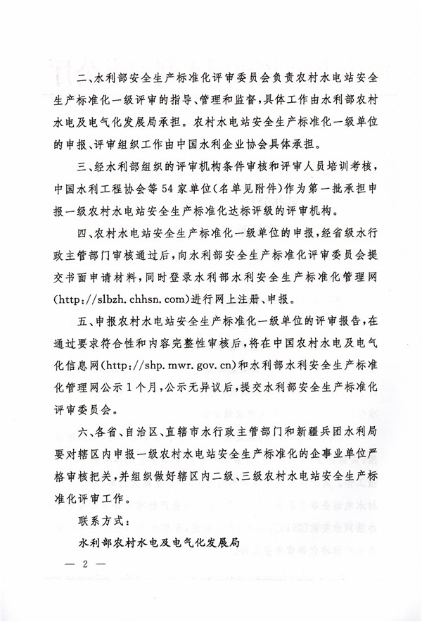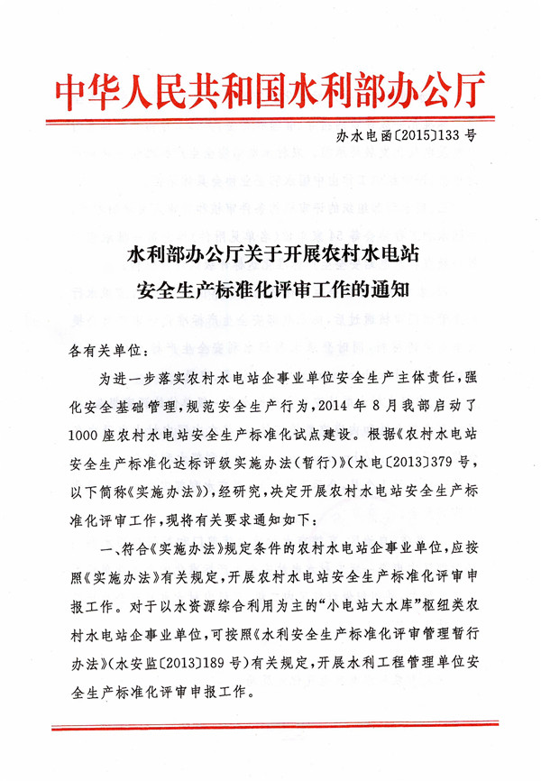 水利部办公厅关于开展农村水电站安全生产标准化评审工作的通知