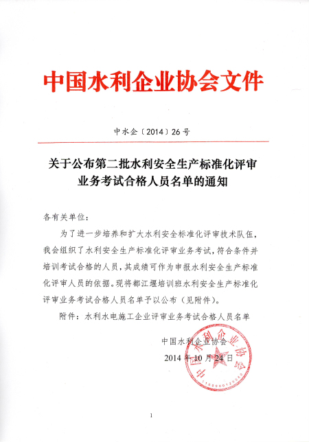 关于公布第二批水利安全生产标准化评审业务考试合格人员名单的通知