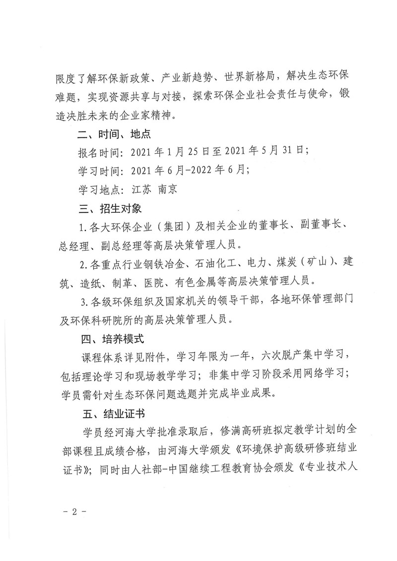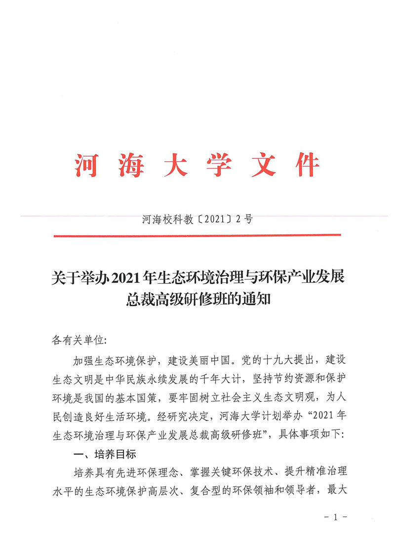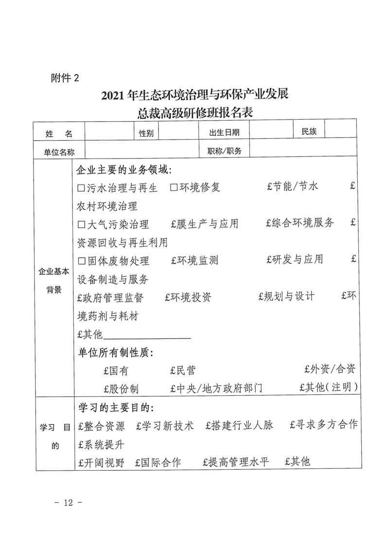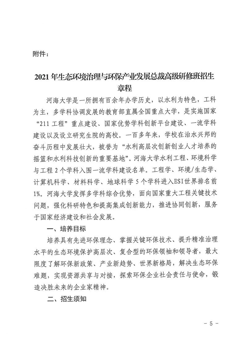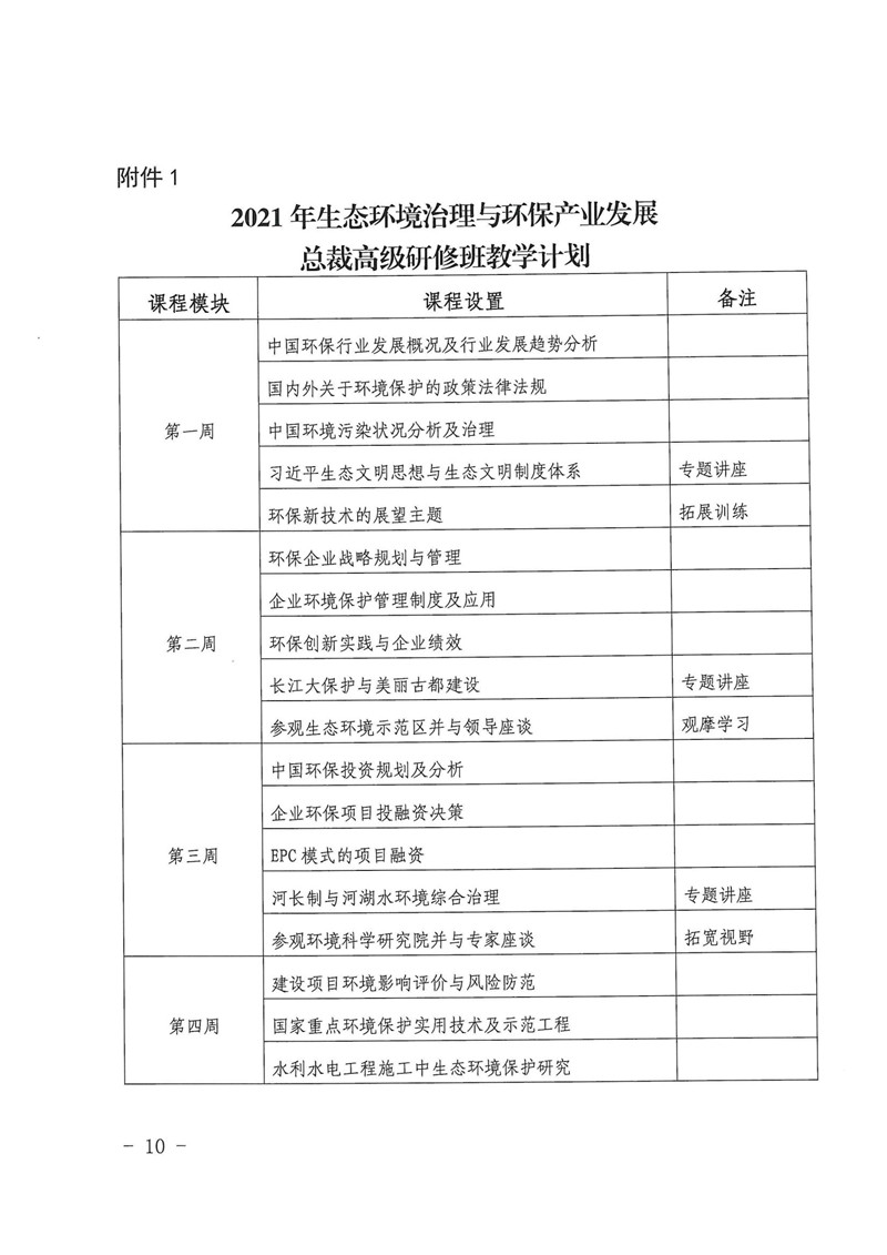 (转发)关于举办2021年生态环境治理与环保产业发展总裁高级研修班的通知