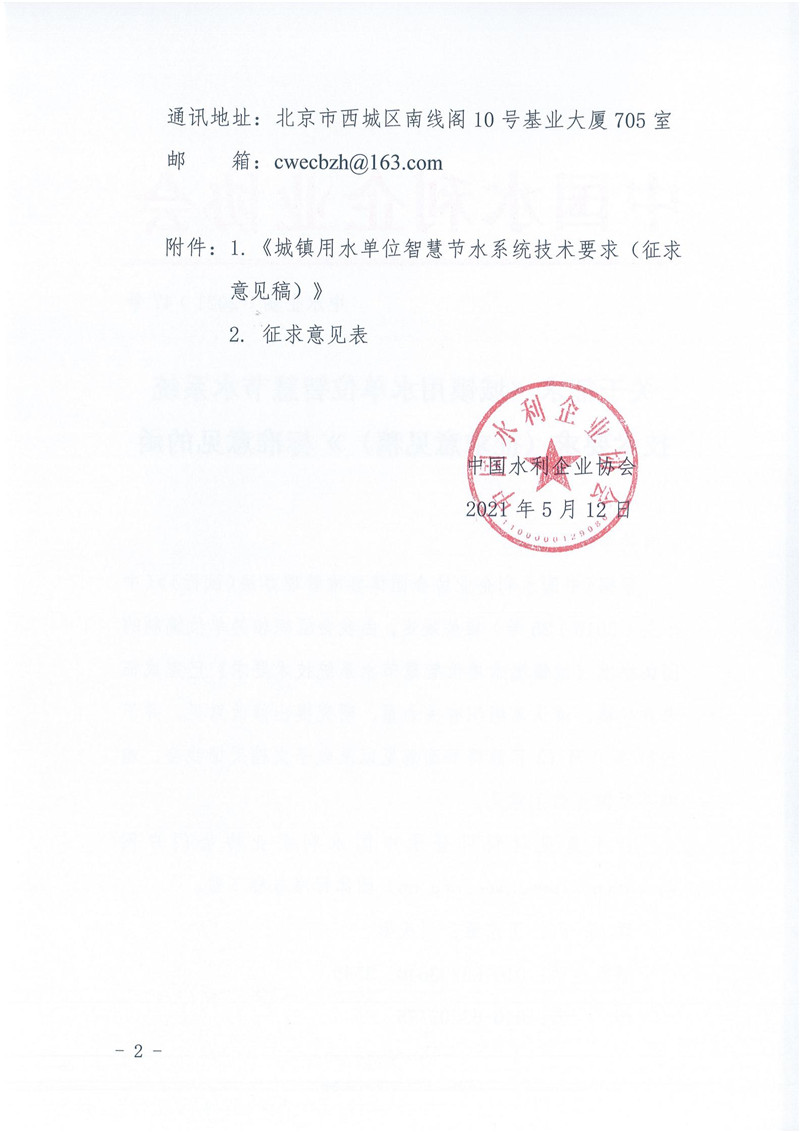 关于征求《城镇用水单位智慧节水系统技术要求(征求意见稿)》标准意见的函