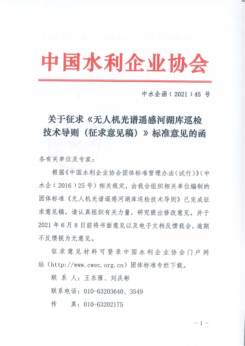 关于征求《无人机光谱遥感河湖库巡检技术导则(征求意见稿)》标准意见的函.pdf