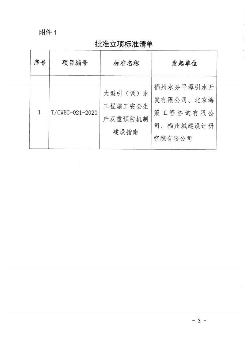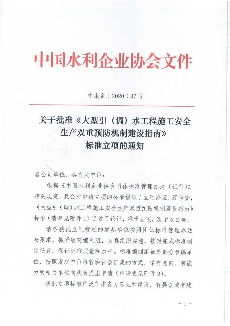 关于批准《大型引(调)水工程施工安全生产双重预防机制建设指南》标准立项的通知