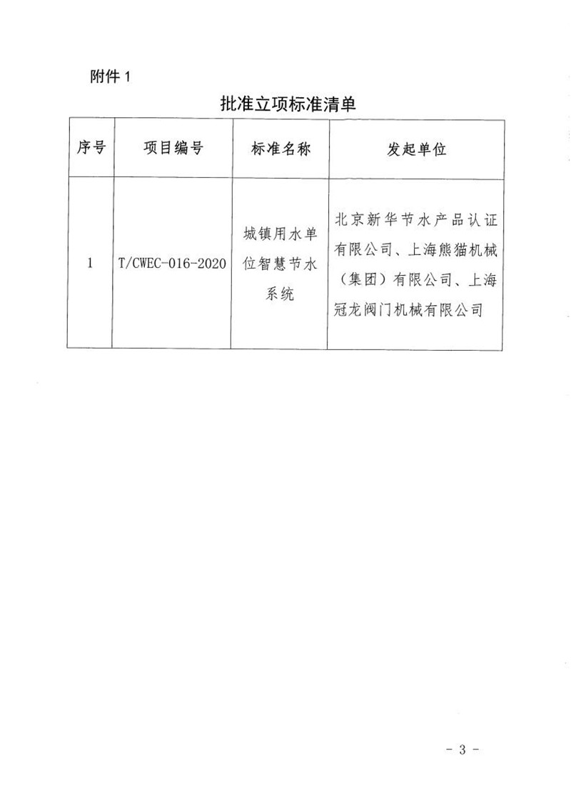关于批准《城镇用水单位智慧节水系统》标准立项的通知