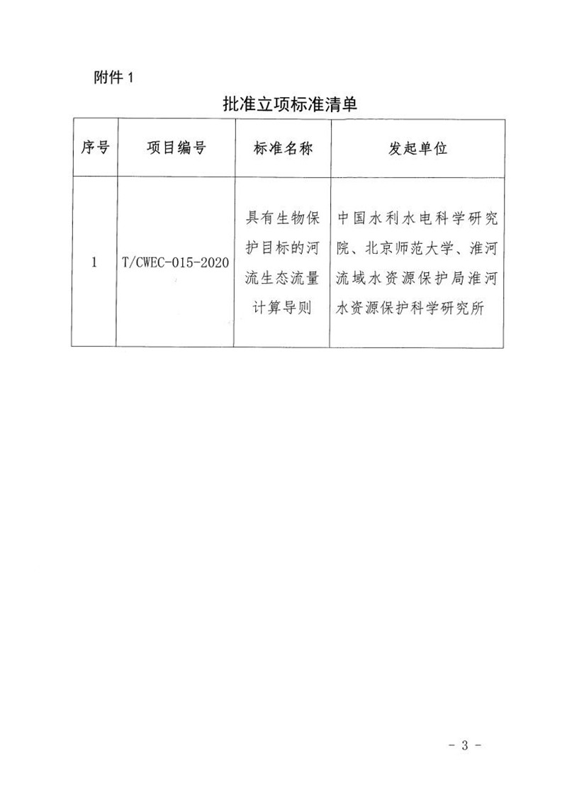关于批准《具有生物保护目标的河流生态流量计算导则》标准立项的通知