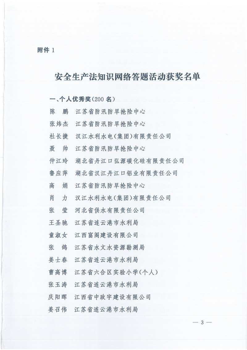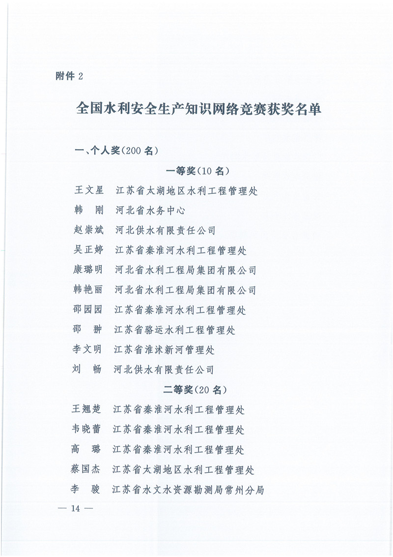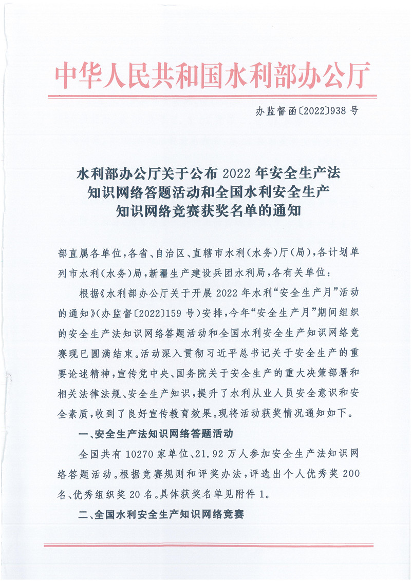 <转发>水利部办公厅关于公布2022年安全生产法知识网络竞赛答题活动和全国水利安全生产知识网络竞赛获奖名单的通知