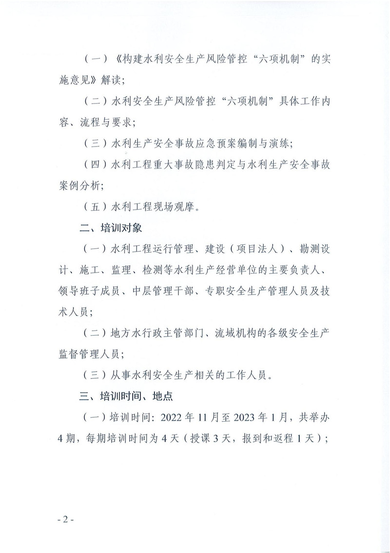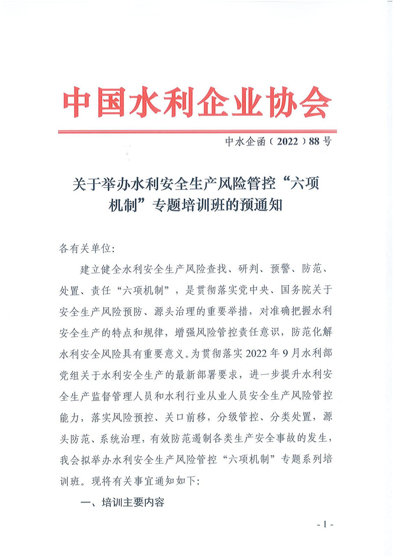 关于举办水利安全生产风险管控“六项机制”专题培训班的预通知