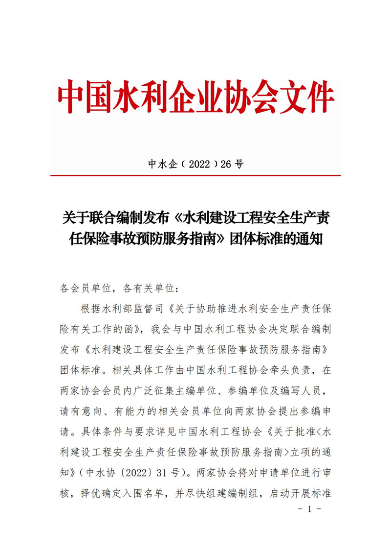 关于联合编制发布《水利建设工程安全生产责任保险事故预防服务指南》团体标准的通知.pdf