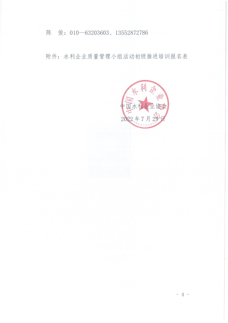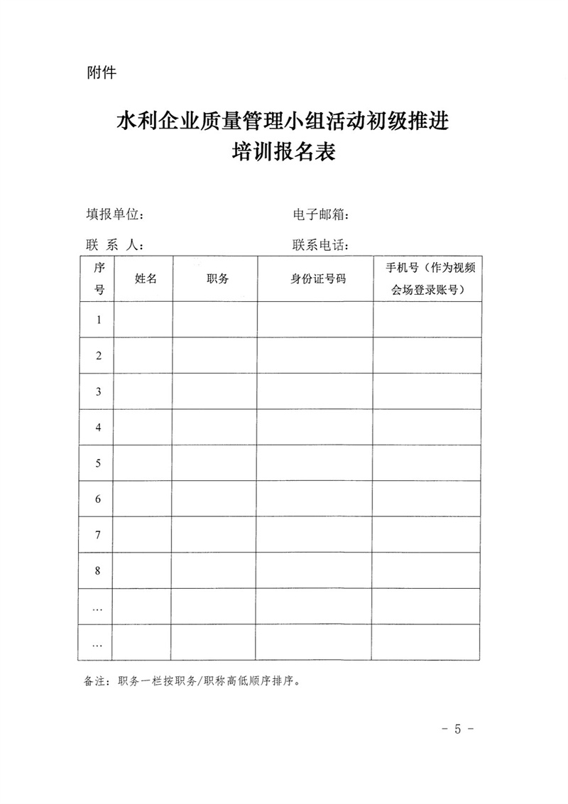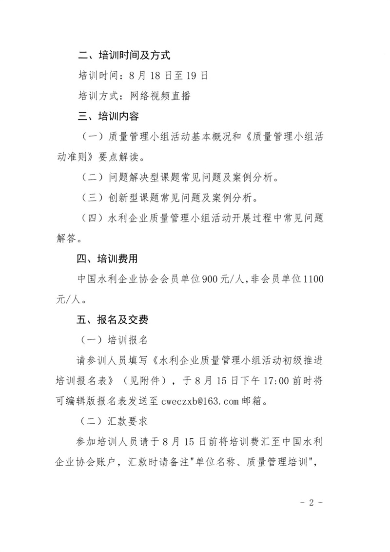 关于举办水利企业质量管理小组活动初级推进培训班的通知