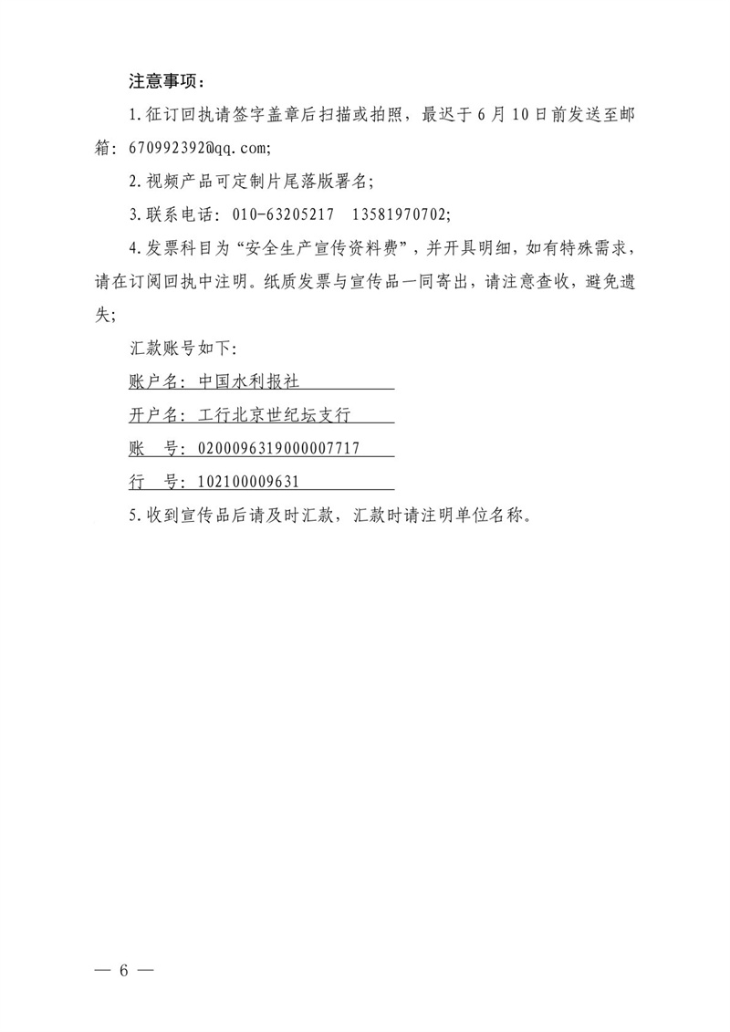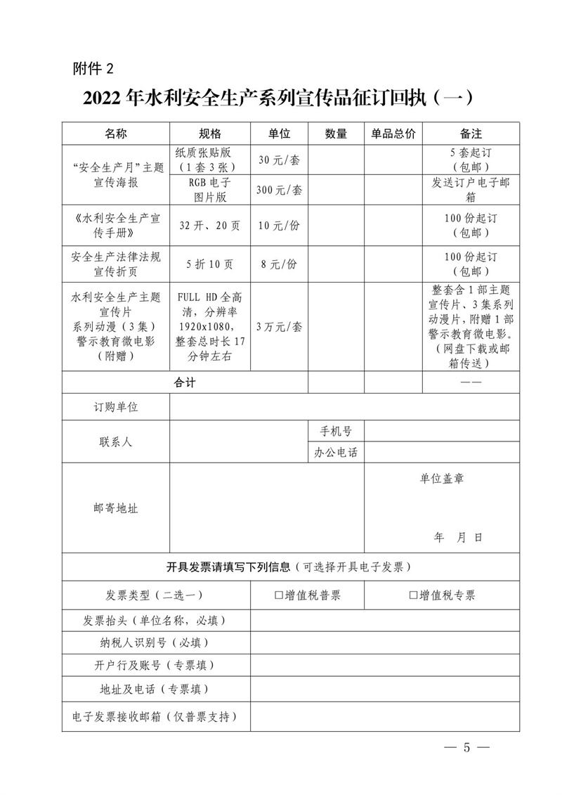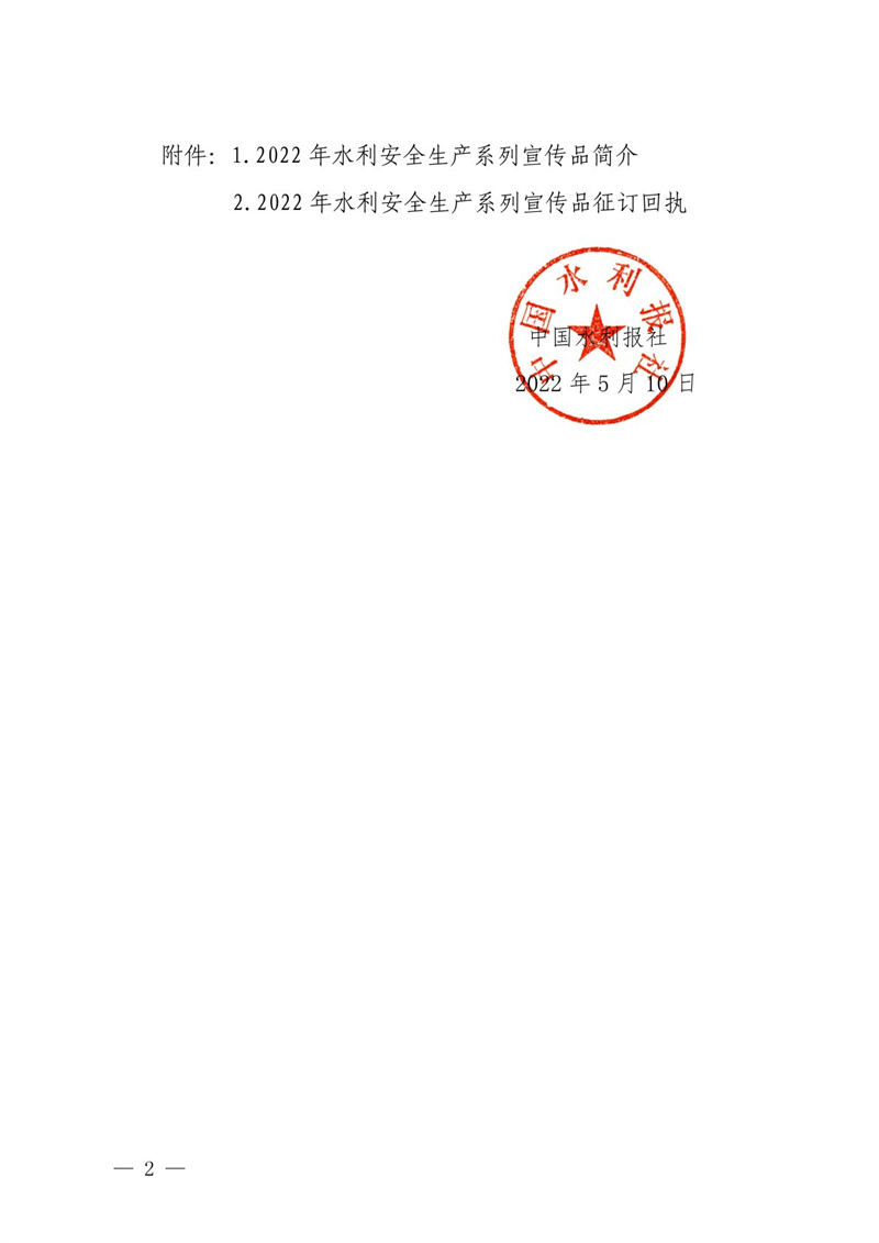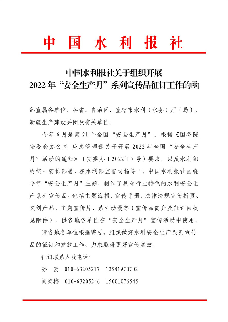 <转发>中国水利报社关于组织开展2022年“安全生产月”系列宣传品征订工作的函