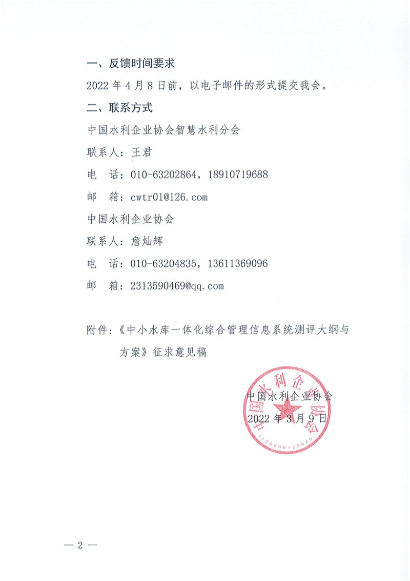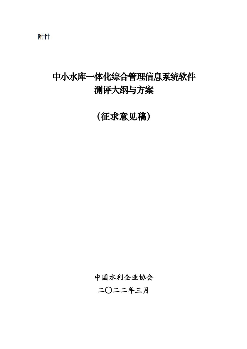 关于征求《中小水库一体化综合管理信息系统软件测评大纲与方案》意见的通知