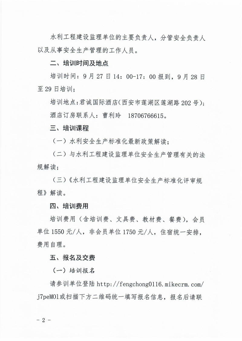 关于举办水利工程建设监理单位安全生产标准化评审规程(西安)培训班的通知