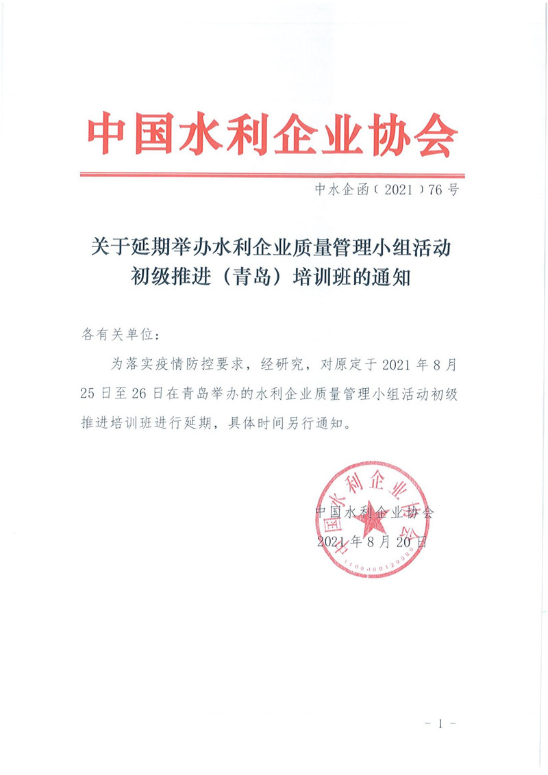 关于延期举办水利企业质量管理小组活动初级推进(青岛)培训班的通知.pdf