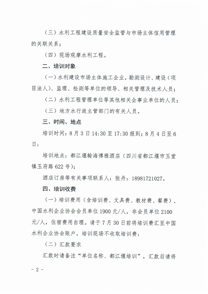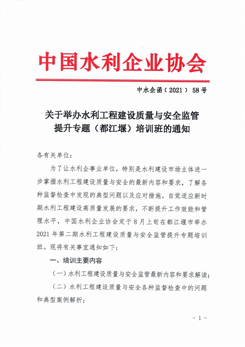 关于举办水利工程建设质量与安全监管提升专题(都江堰)培训班的通知