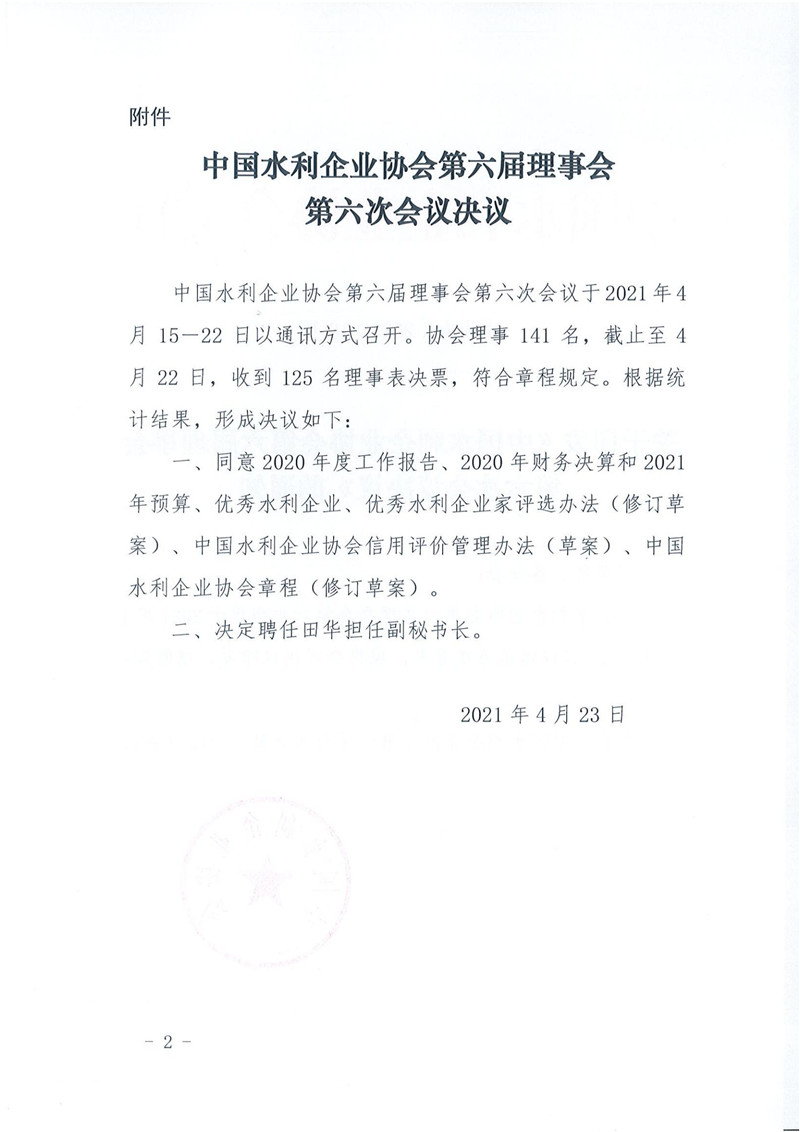 关于印发《中国水利企业协会第六届理事会第六次会议决议》的通知
