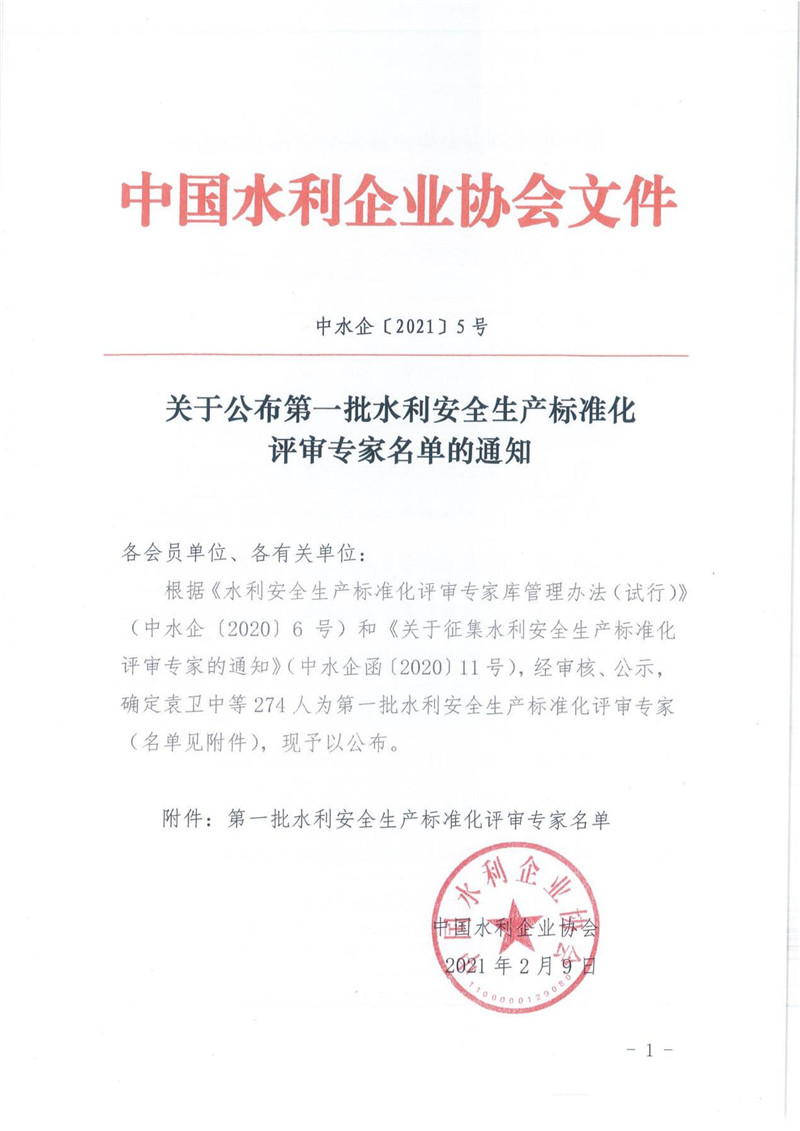 中国水利企业协会关于公布第一批水利安全生产标准化评审专家名单的通知.pdf