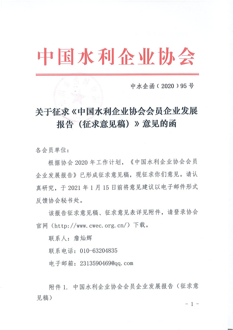 关于征求《中国水利企业协会会员企业发展报告(征求意见稿)》意见的函