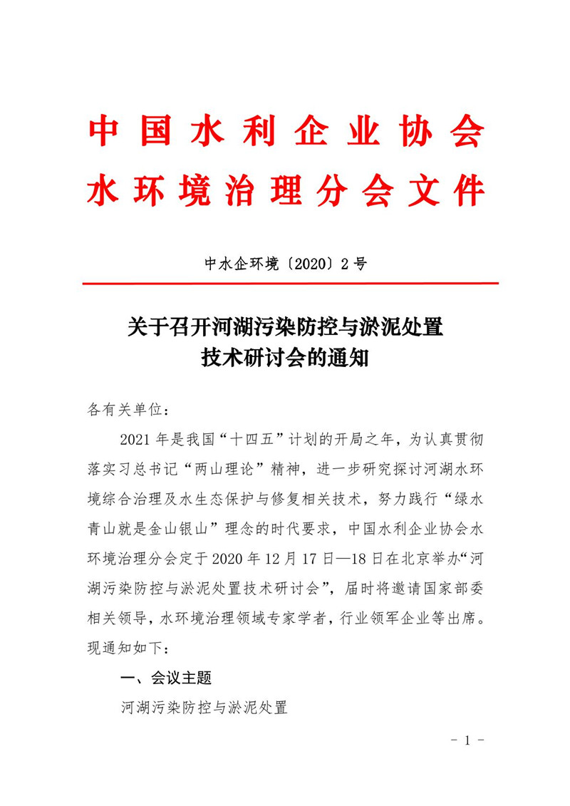 关于召开河湖污染防控与淤泥处置技术研讨会的通知