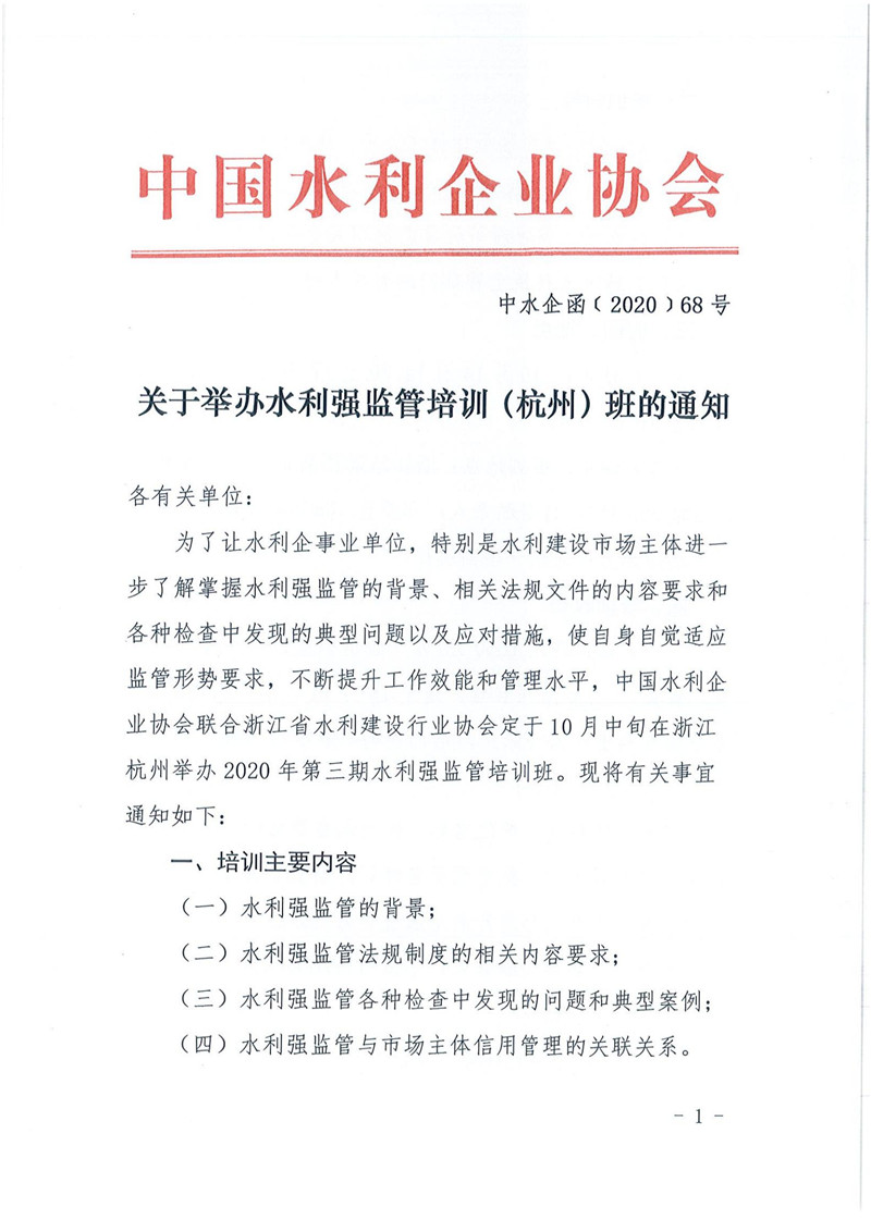 关于举办水利强监管培训(杭州)班的通知.pdf