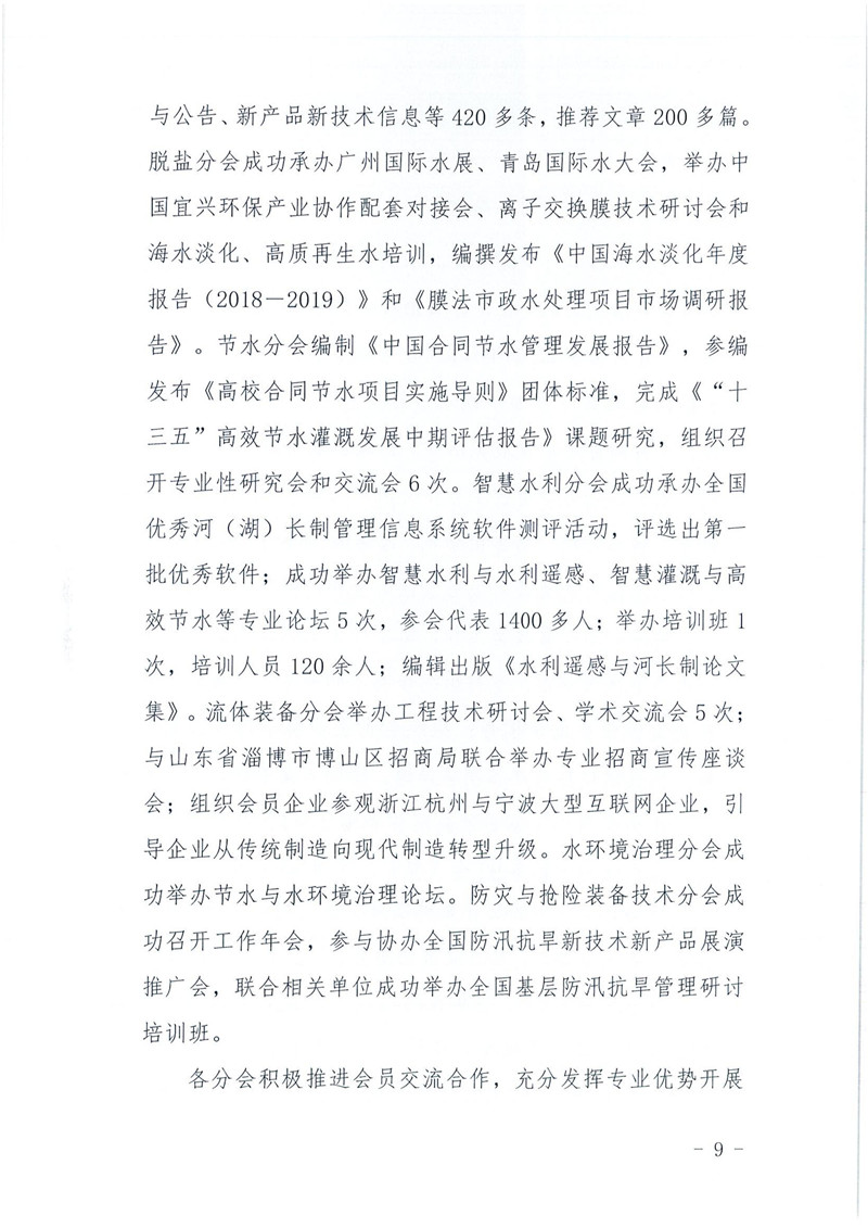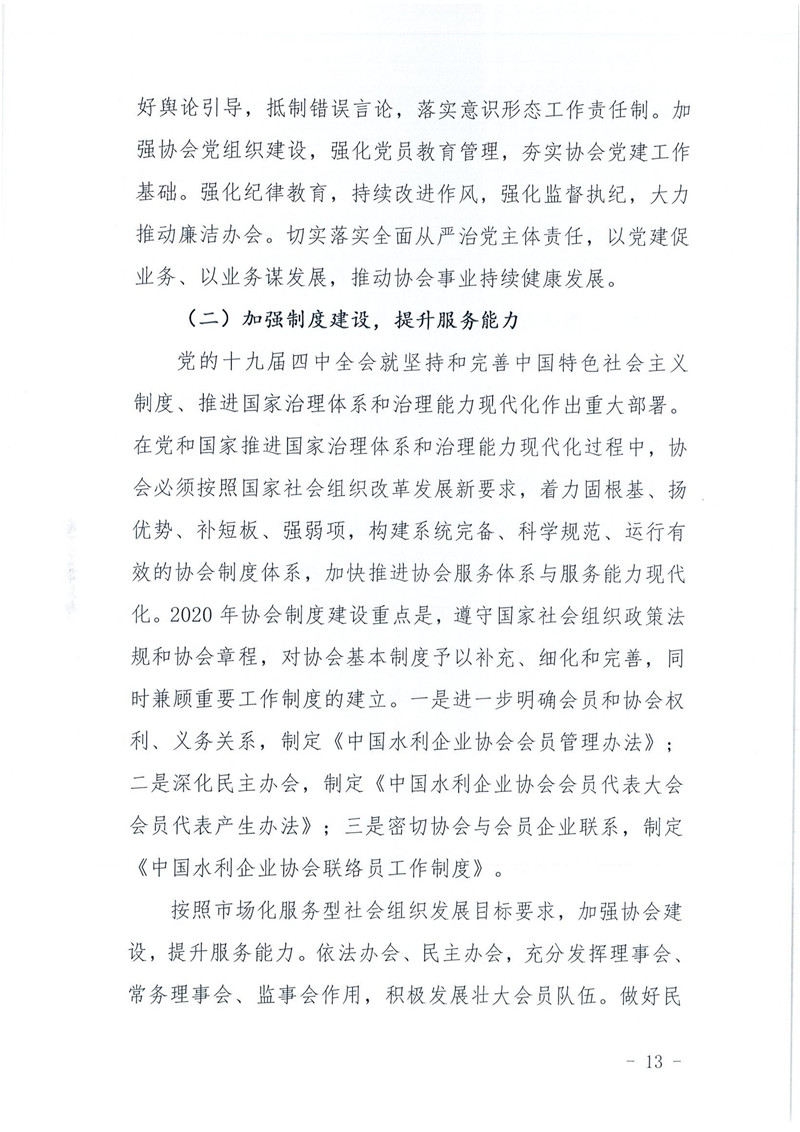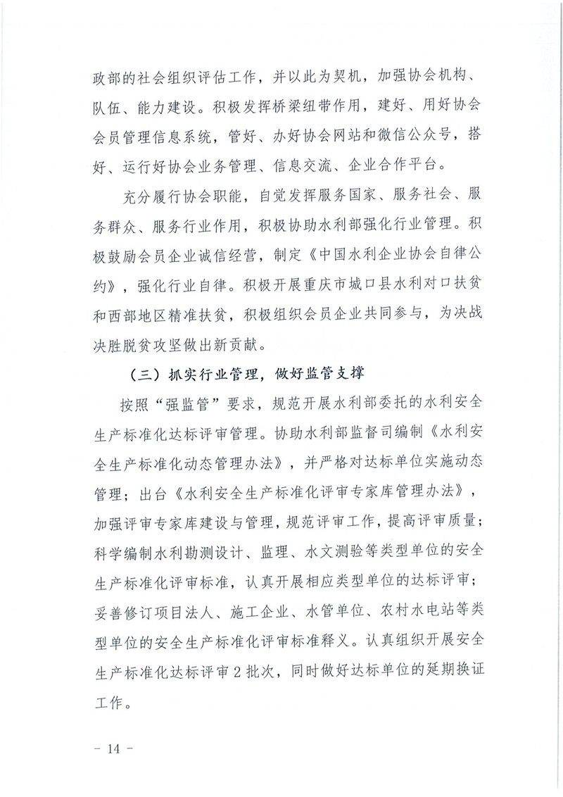 关于印发《中国水利企业协会2019年度工作报告》的通知