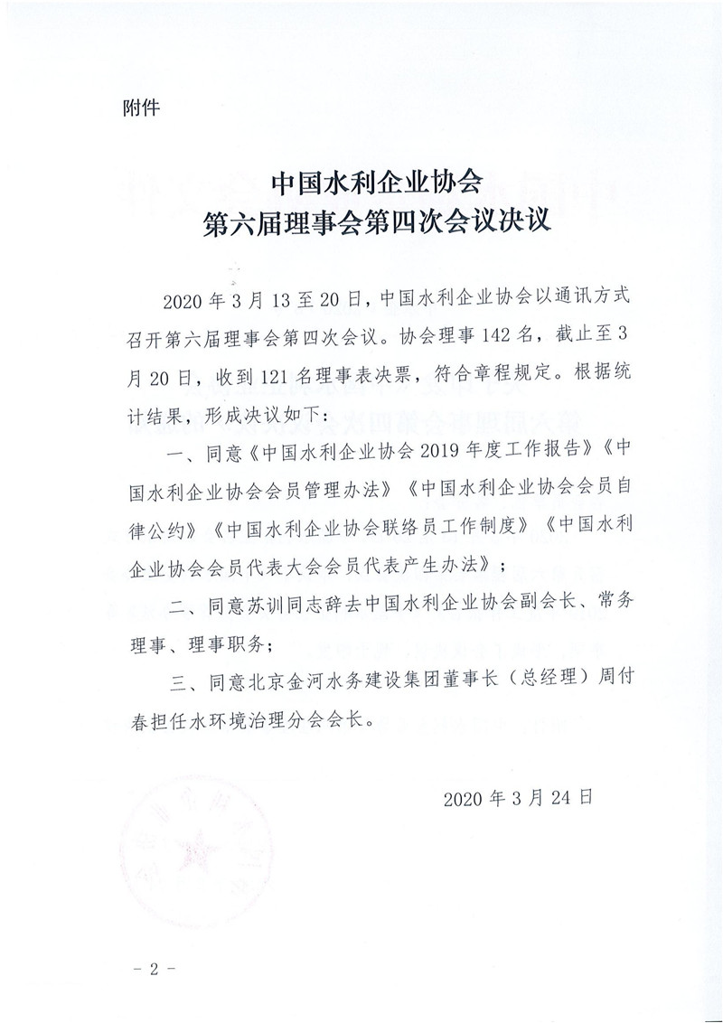 关于印发《中国水利企业协会第六届理事会第四次会议决议》的通知