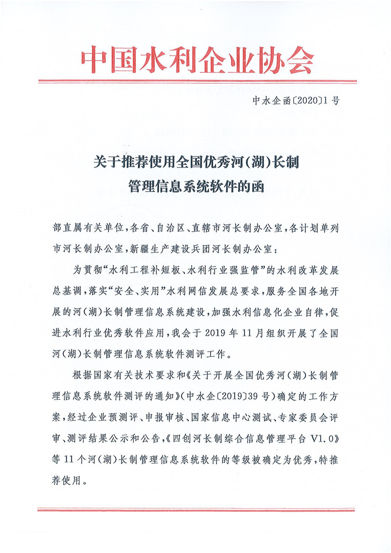 关于推荐使用全国优秀河(湖)长制管理信息系统软件的函