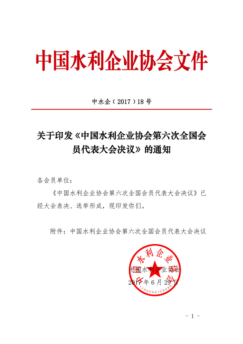 关于印发《中国水利企业协会第六次全国会员代表大会决议》的通知