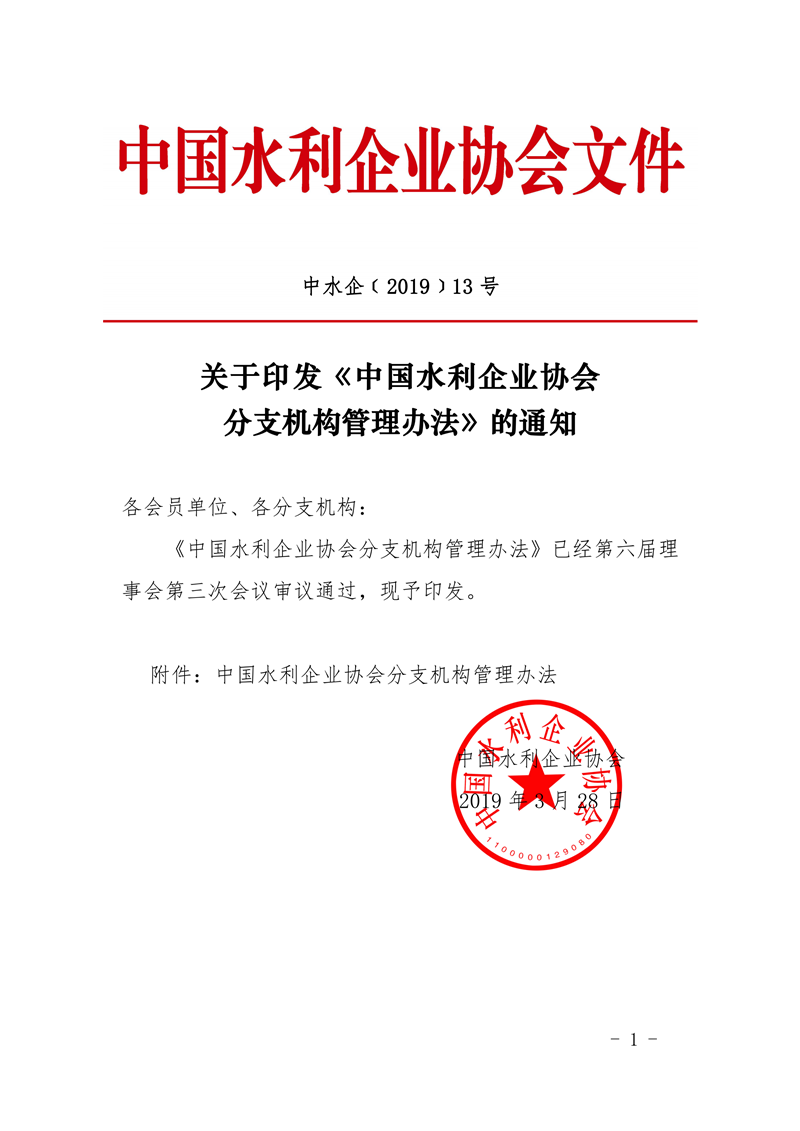 关于印发《中国水利企业协会分支机构管理办法》的通知