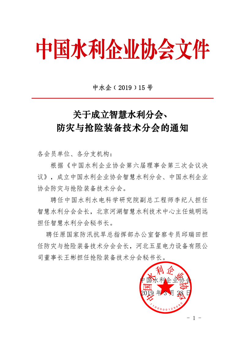关于成立智慧水利分会、防灾与抢险装备技术分会的通知
