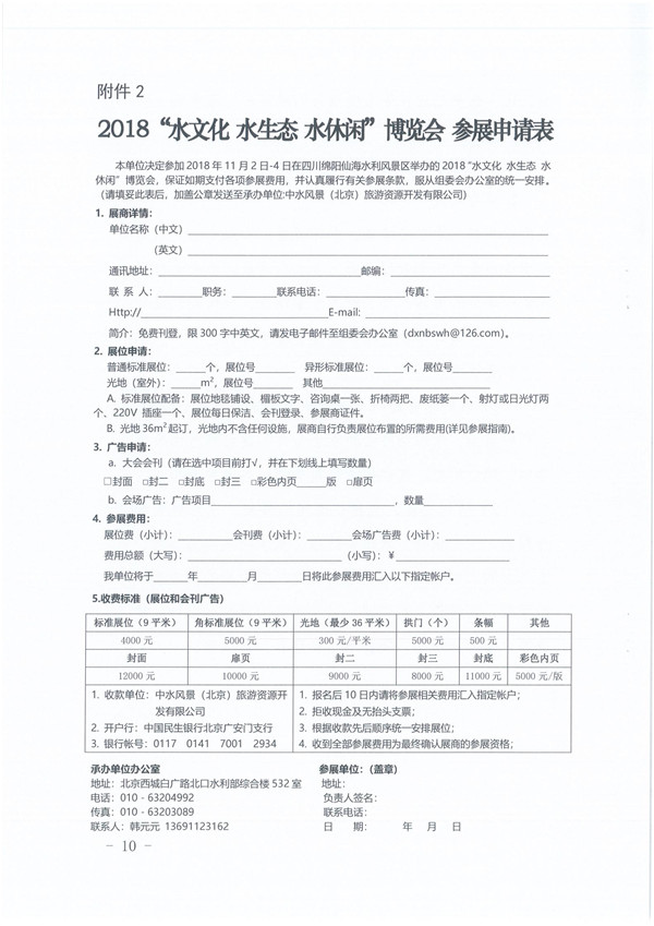 附件2:2018“水文化 水生态 水休闲”博览会参展申请表.docx