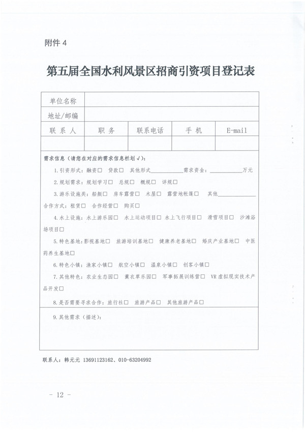 附件4:第五届全国水利风景区招商引资项目登记表.docx