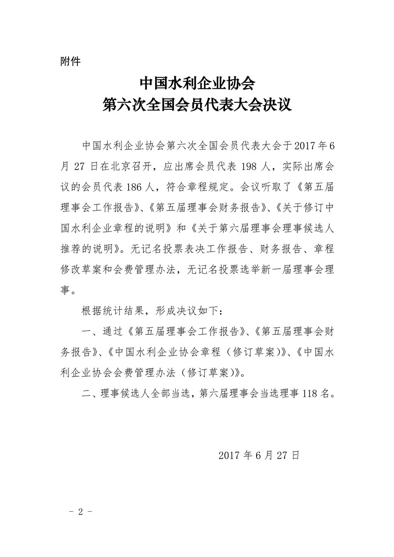 关于印发《中国水利企业协会第六次全国会员代表大会决议》的通知