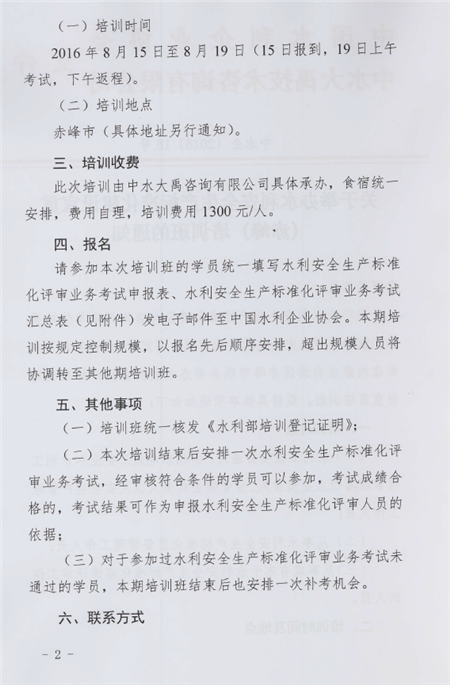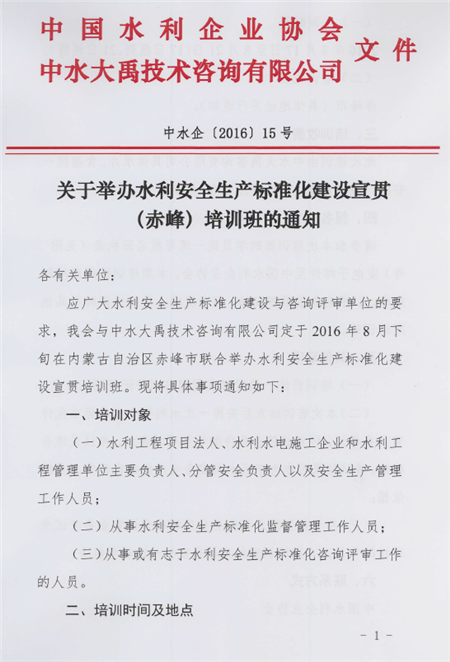 关于举办水利安全生产标准化建设宣贯(赤峰)培训班的通知