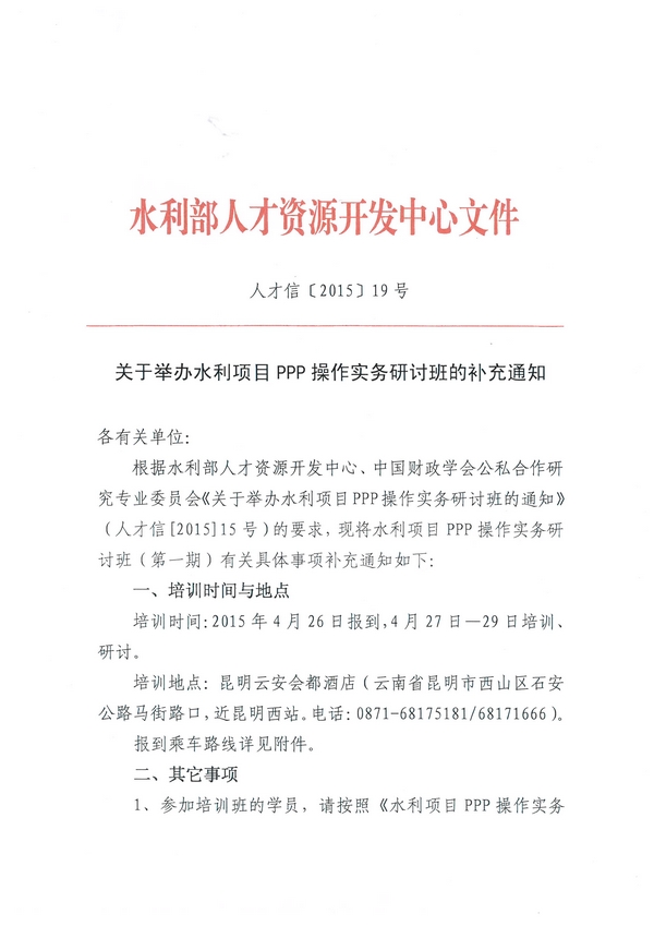 关于举办水利项目ppp操作实务研讨班的补充通知